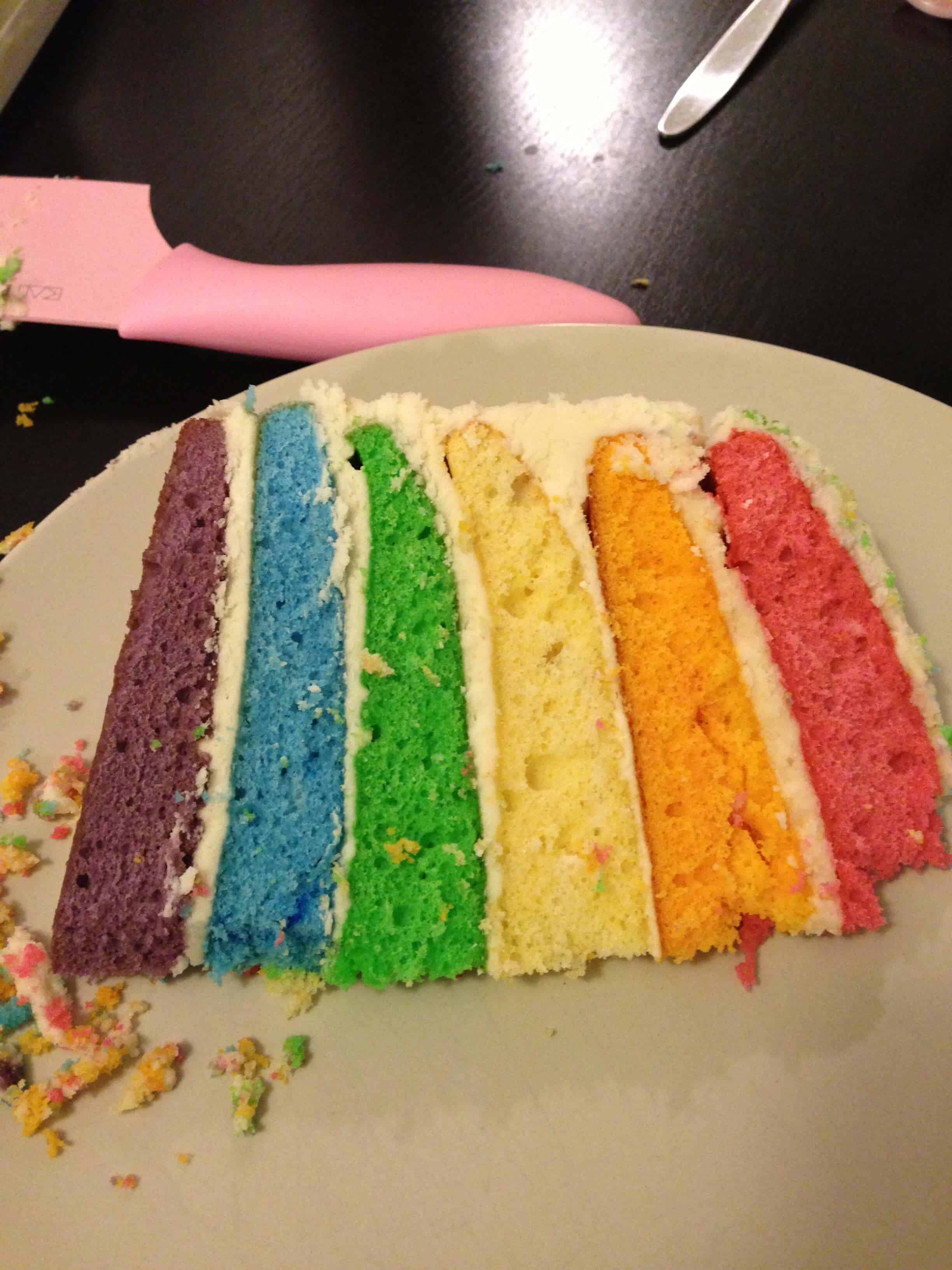 然后我在一个9英寸的圆饼盘烘烤各薄层。由于这些层是如此之薄,一旦它们从烘烤上升它们难以水平平面。为了避免这个问题,我通过交替它们底部向下/自上而下扯平层。我还用结霜,确保蛋糕甚至呆了很多......我用这个经典香草奶油配方从食物网络。分层去伟大的,但我用筷子稳定蛋糕,并确保它在的地方住了一夜。我很高兴与最终产品。