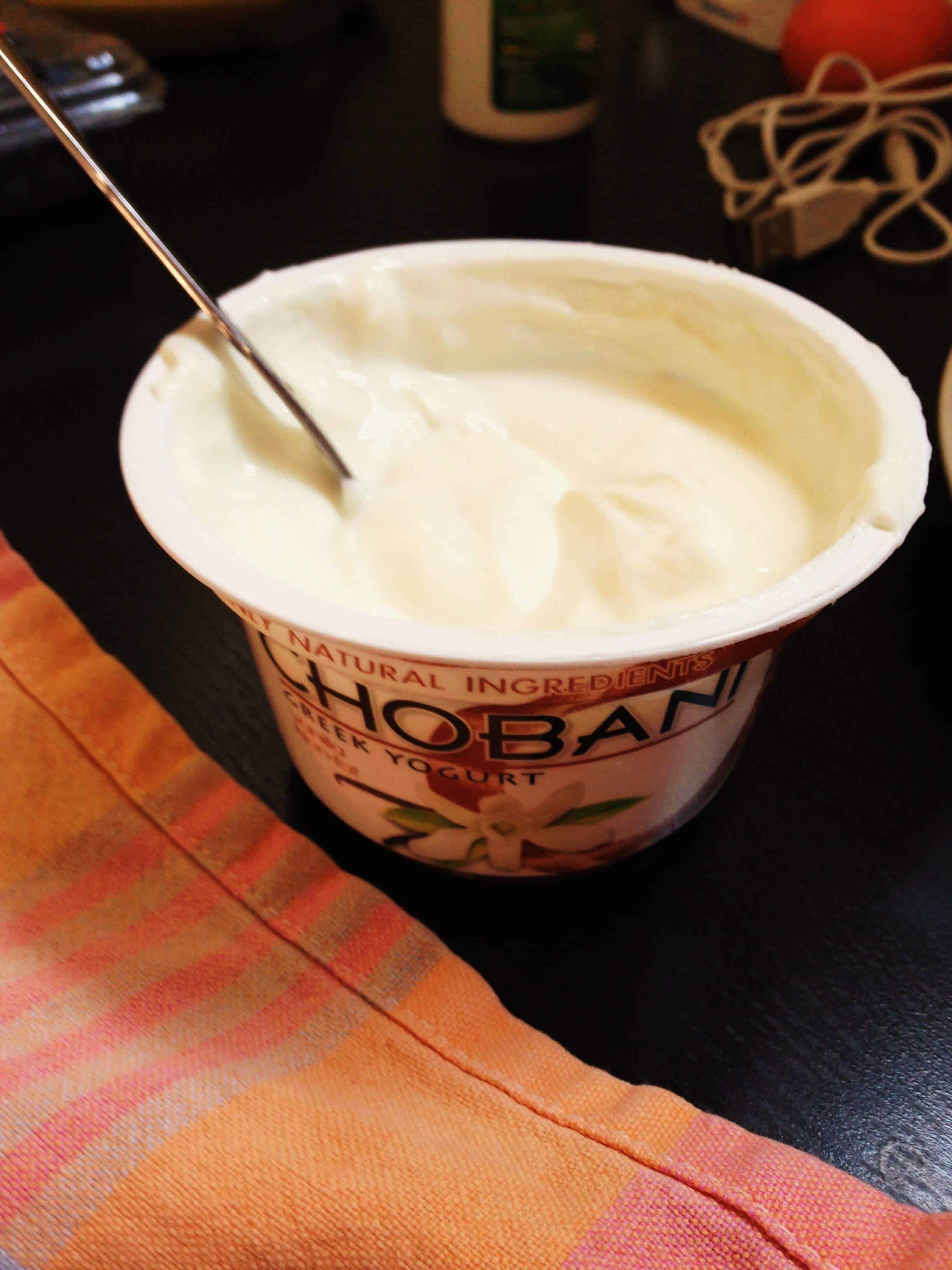 所以我冲洗掉我的蓝莓开始!我用了一品脱蓝莓和一盒香草乔巴尼酸奶。