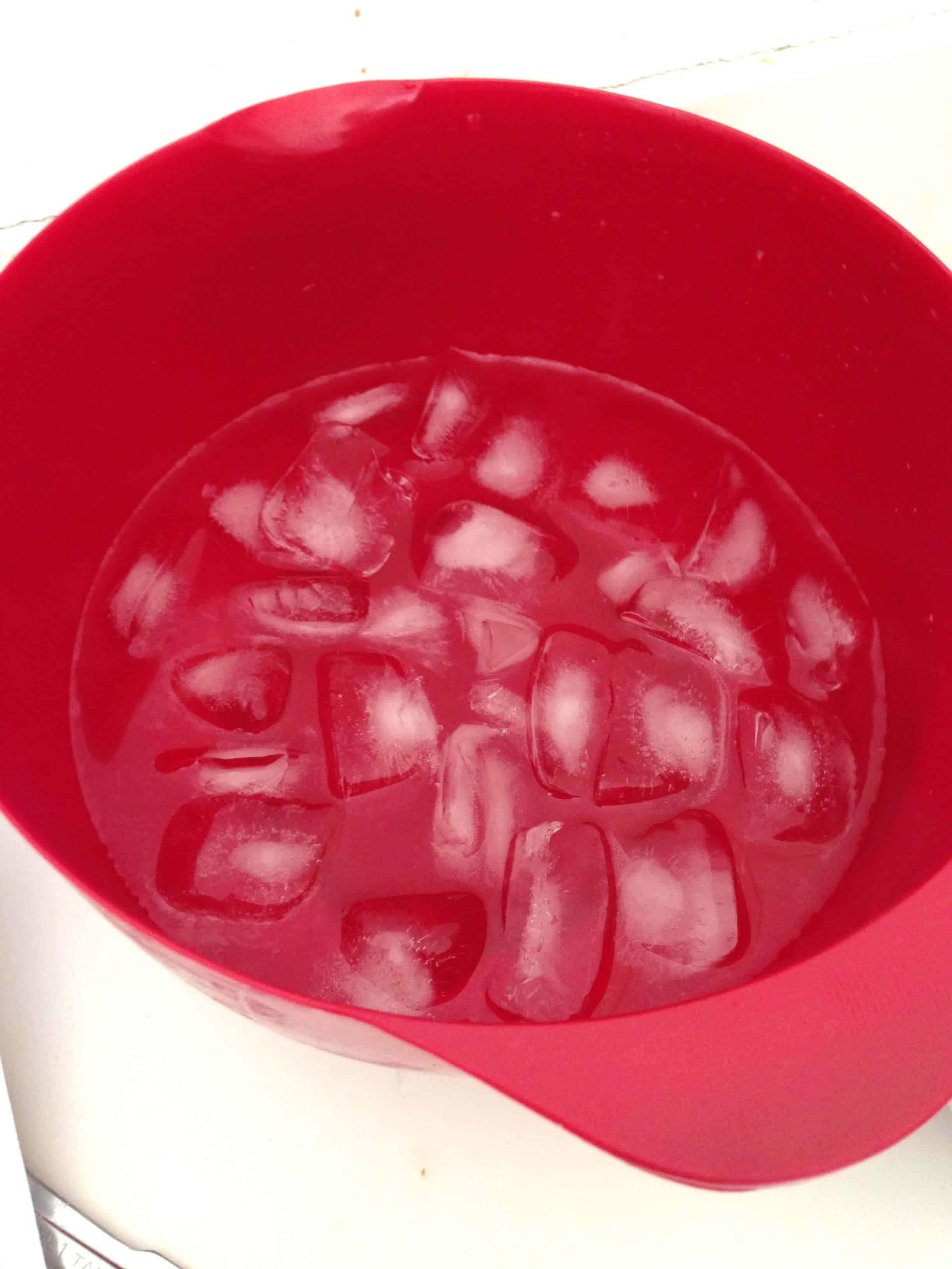 接下来,我将糕点奶油舀到一个小碗里并将其设置在冰水浴中,以停止烹饪过程。我的冰浴是一点点贫民窟,但我认为它做了这件事。我一定要使奶油冷却,以确保它保持其光滑的质地。