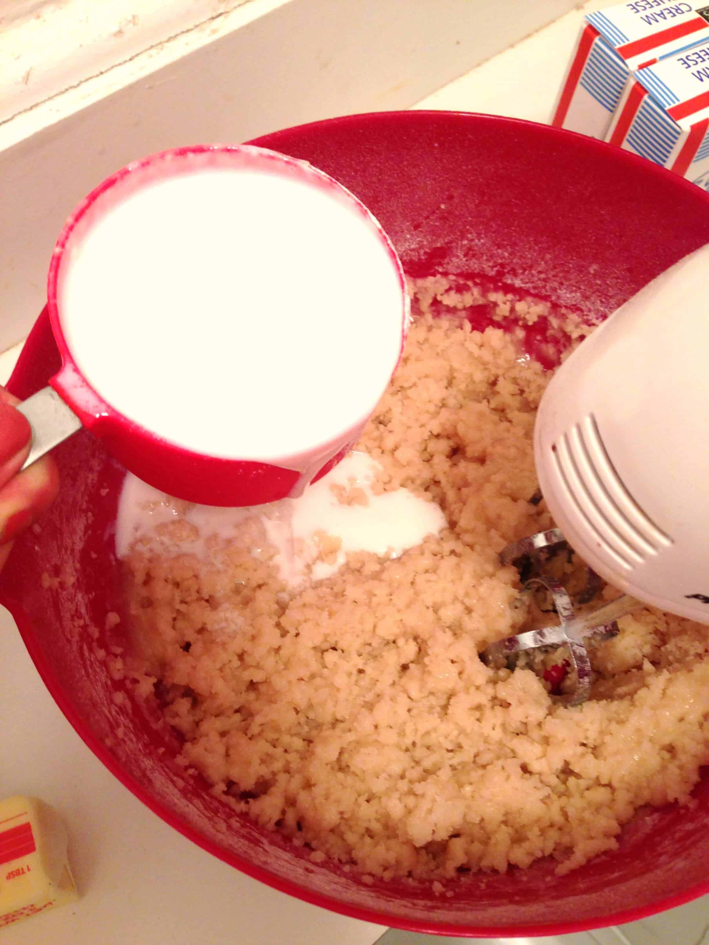 I made the frosting in the morning before I went to work. I creamed together the butter and cream cheese until smooth, and then beat in the vanilla. I added the sugar and beat on low speed until it all was combined, then on high speed until frosting is smooth.