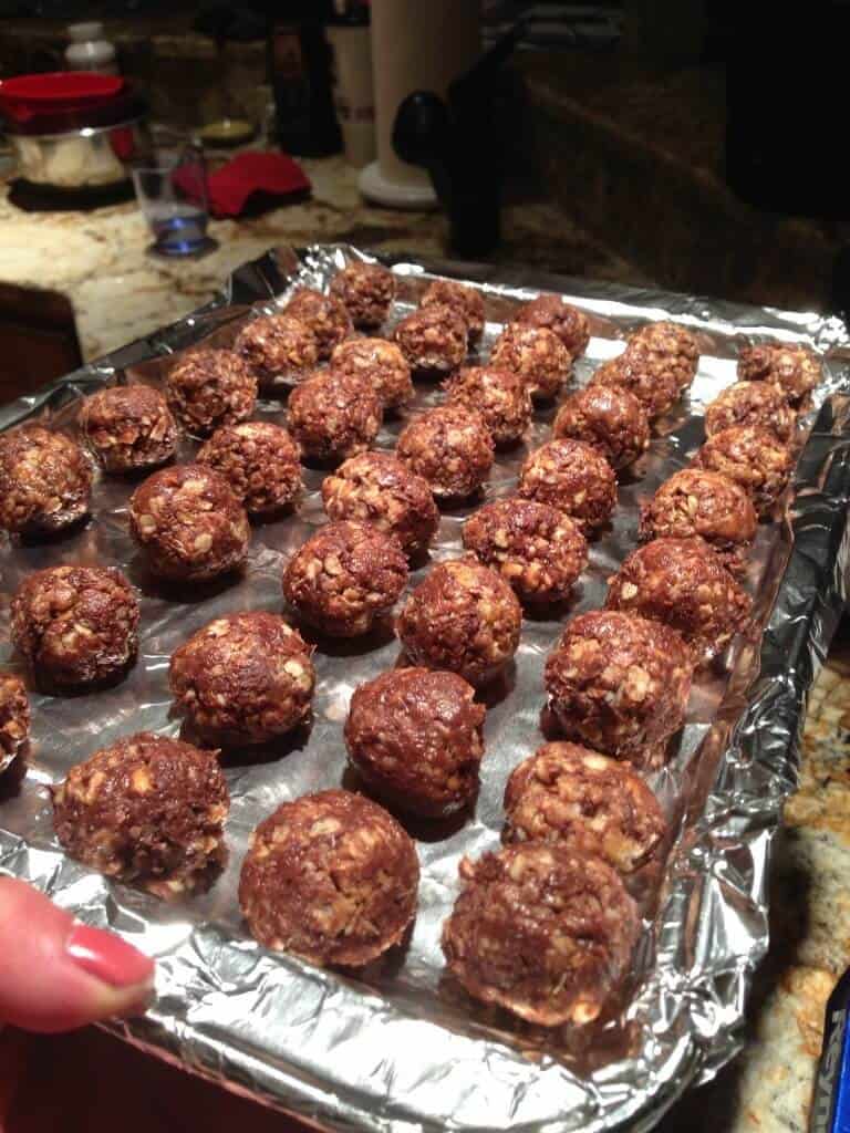 把这些混合物卷成3/4英寸的小球,放在冰箱里放一夜。