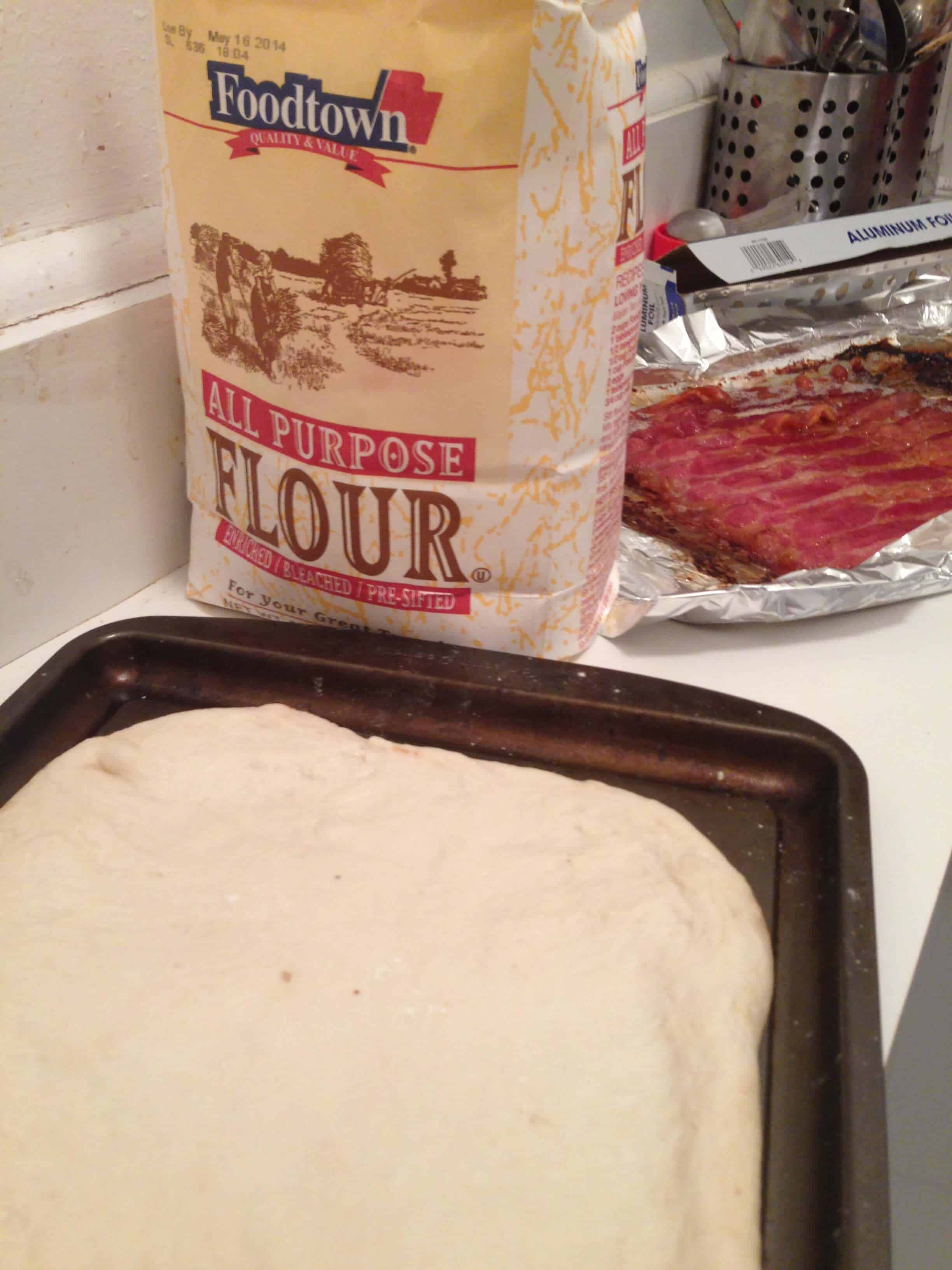 Breakfast is my favorite meal of the day. When I get to eat breakfast for dinner, it’s even better. This train of thought is what inspired dinner tonight. I used freshly-made, store-bought dough to make the pizza crust because I was short on time, but you can always make your own. The ingredients included: