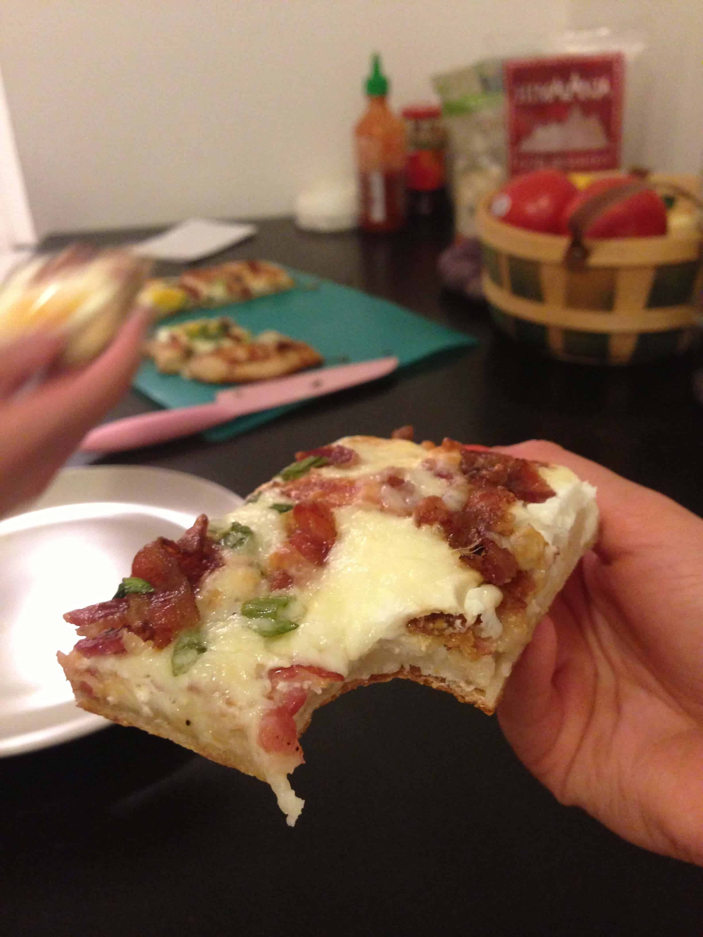 I absolutely loved this dinner! I let the pizza cool a teensy bit too long, so my yolks weren’t as runny as I would have liked. But other than that, this meal was a home run!