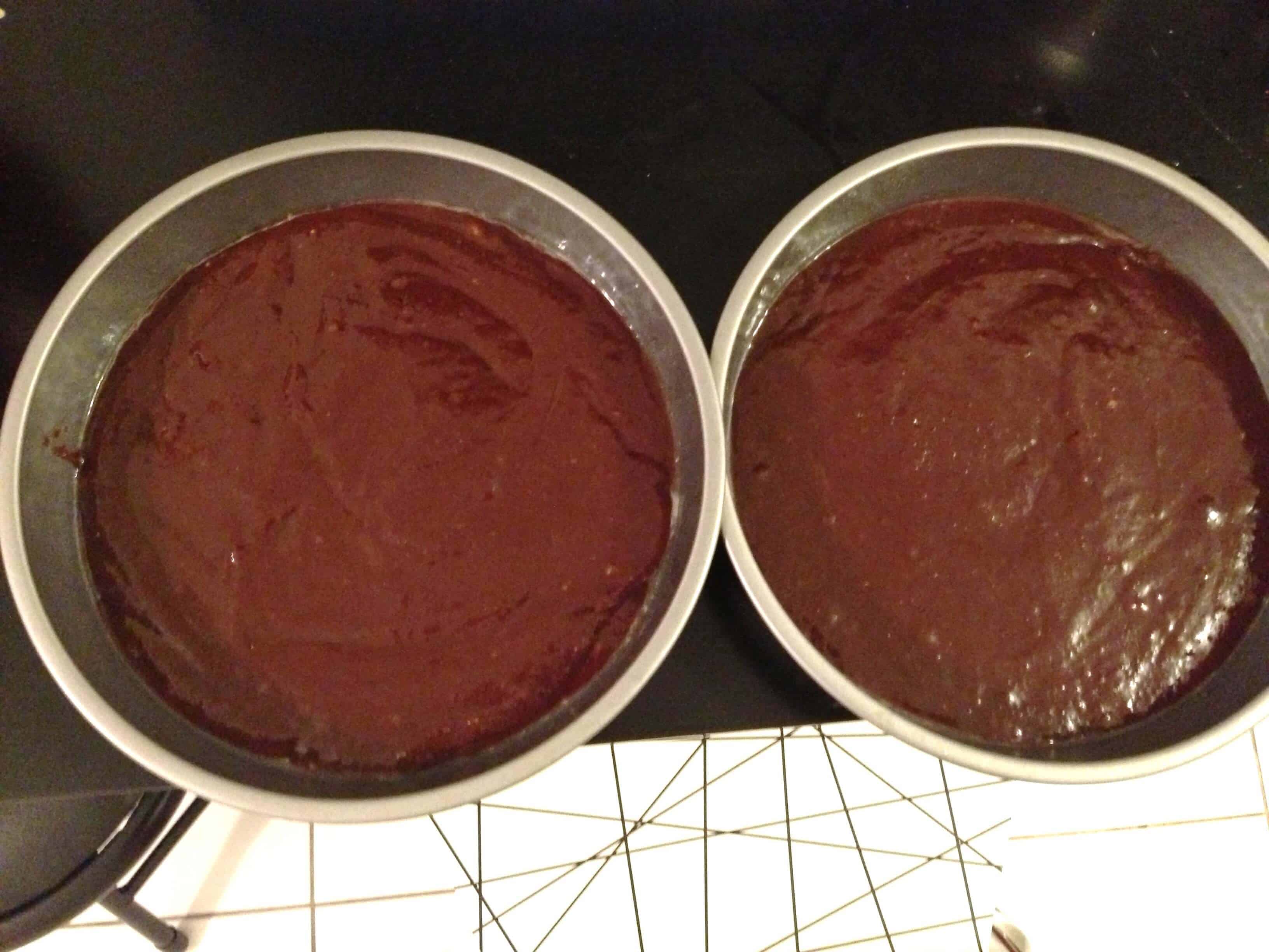 预热烤箱至350°F。涂上润滑脂,在两个9英寸的圆形蛋糕盘上划线。此外,一定要润滑衬里。