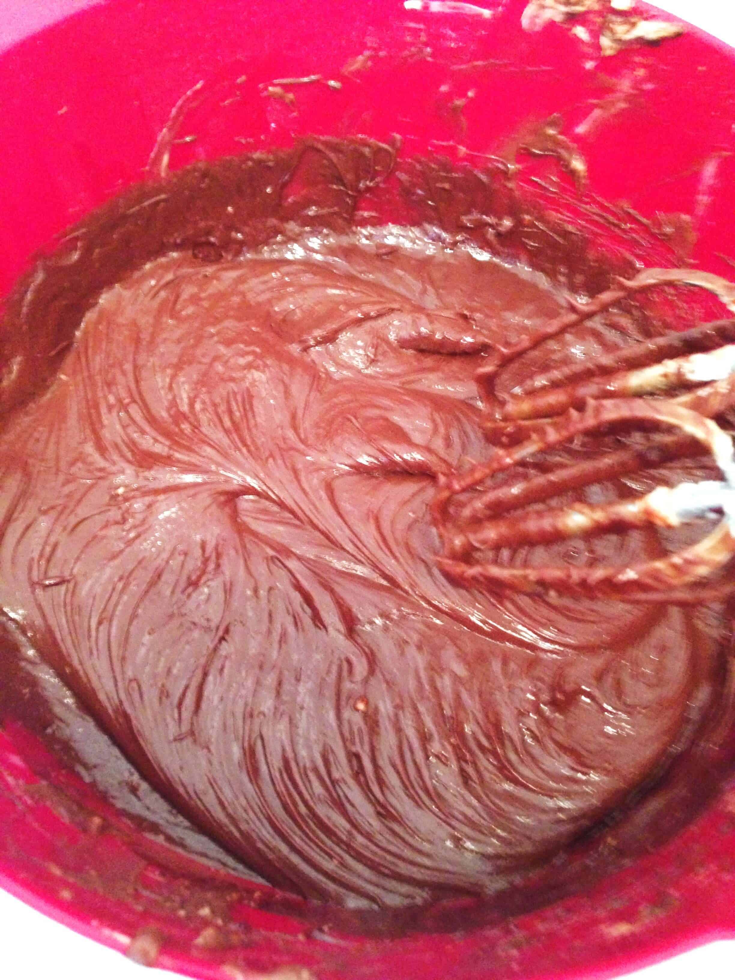 在平底锅中,用中低温将巧克力、黄油和玉米糖浆混合,搅拌至完全融合。关火,冷却至室温,偶尔搅拌。釉料应该变厚到可涂抹的稠度。
