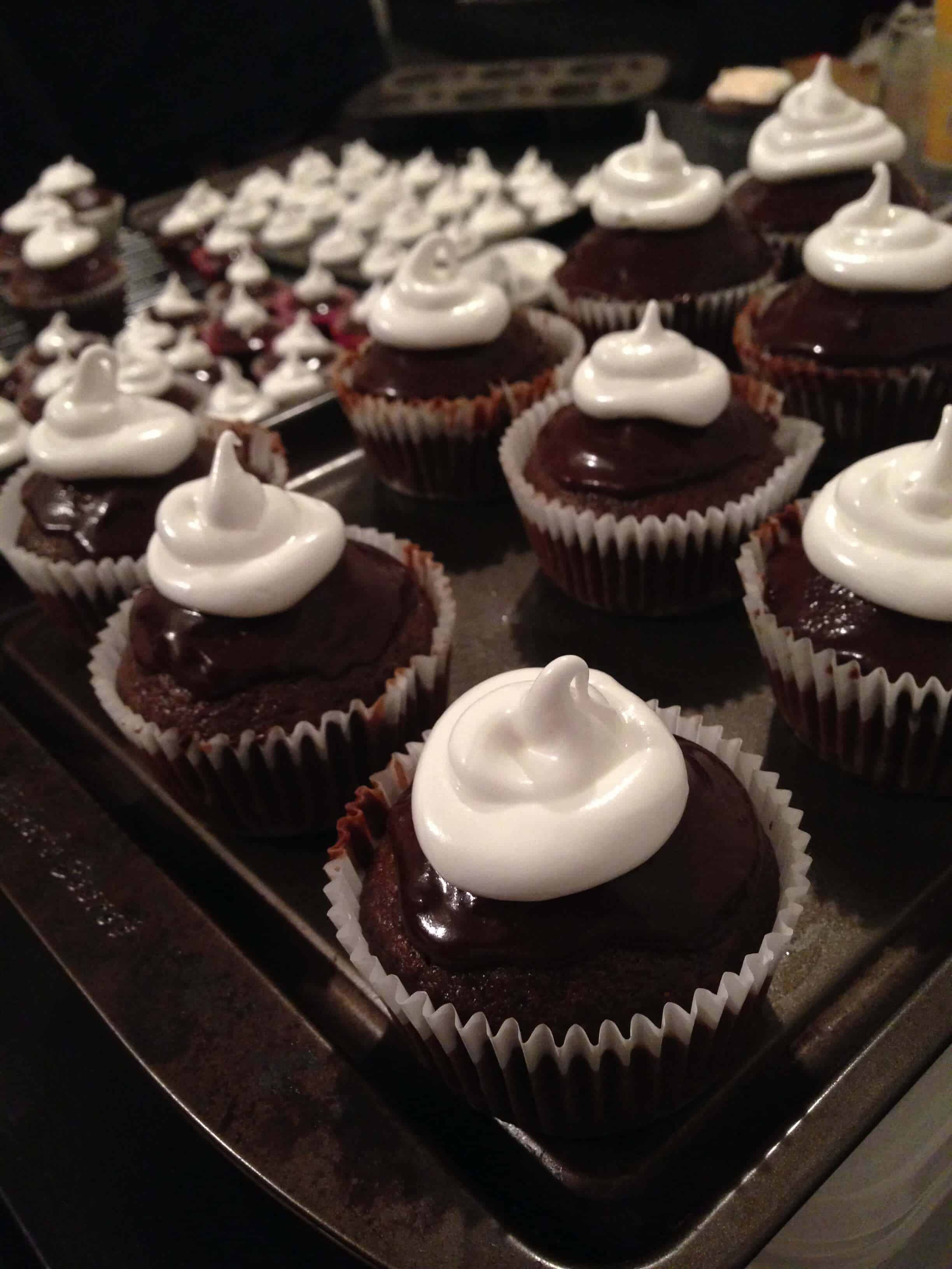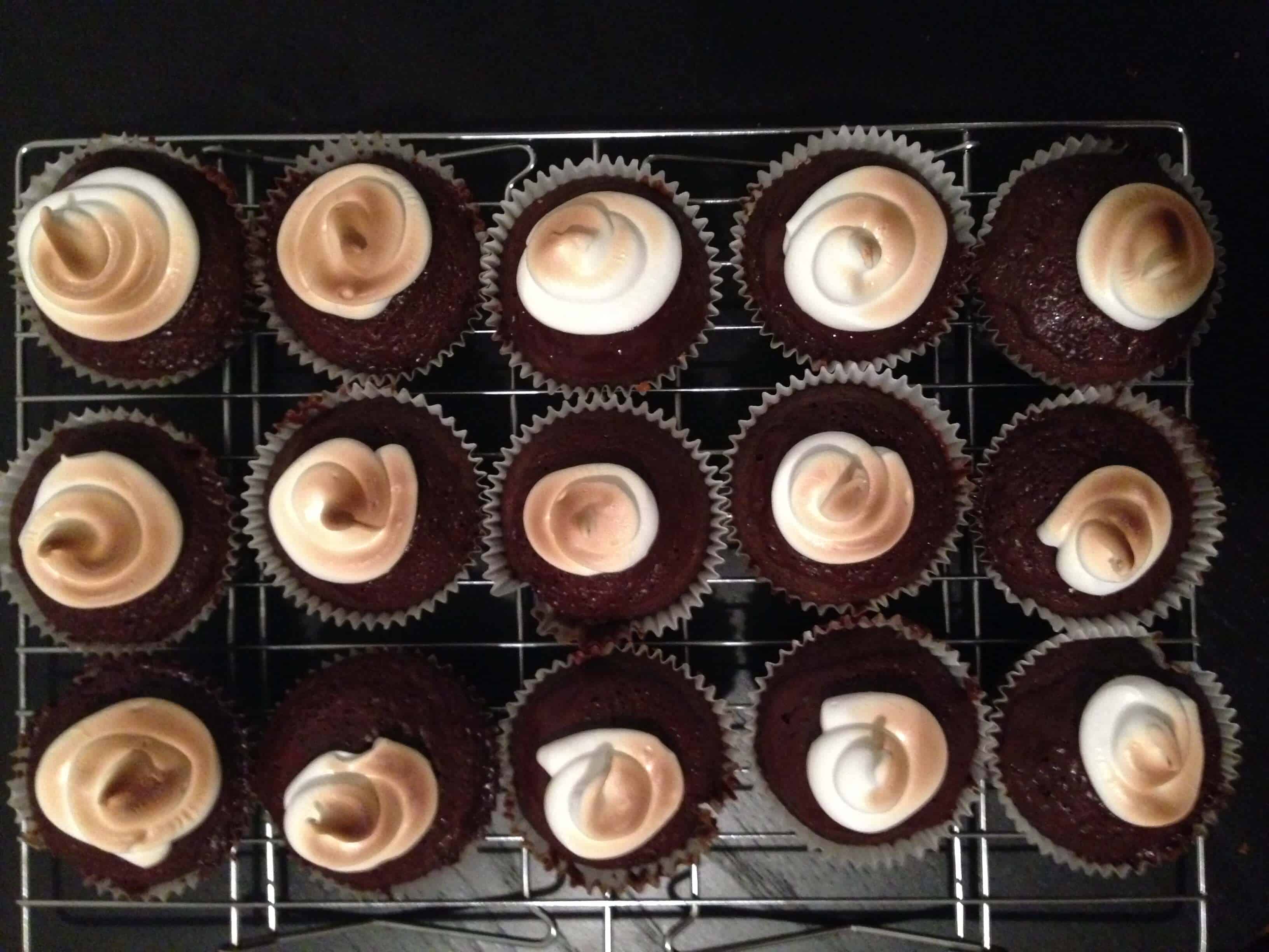我一直在等一个有空的晚上来试试这个食谱。瞧,我昨天六点半就得下班了。这个食谱有四种成分:全麦饼干皮、巧克力纸杯蛋糕、巧克力釉和烤棉花糖糖霜。当这些元素结合在一起,你会得到一种令人惊叹的质地和味道。尽管食谱很长,但我敢打赌,你可以在食品柜里找到大部分的食材。