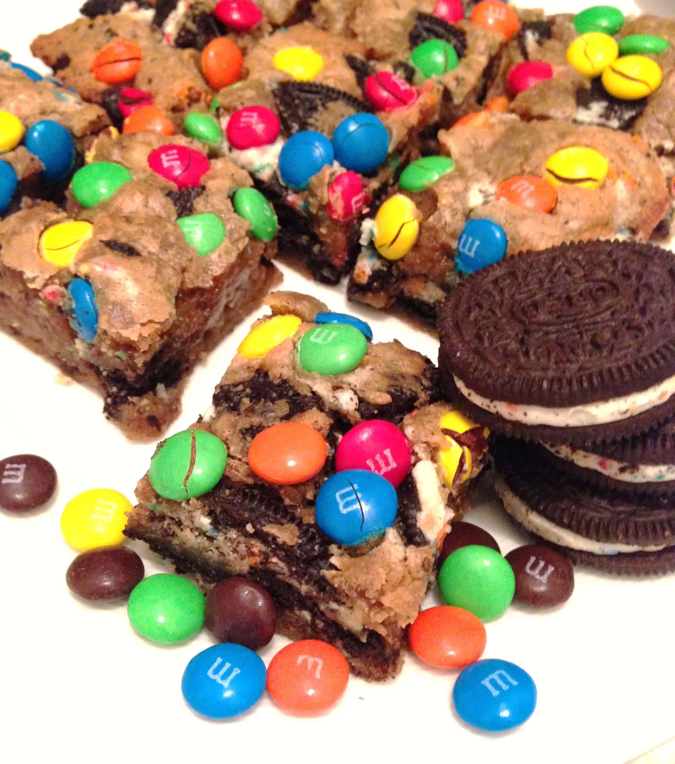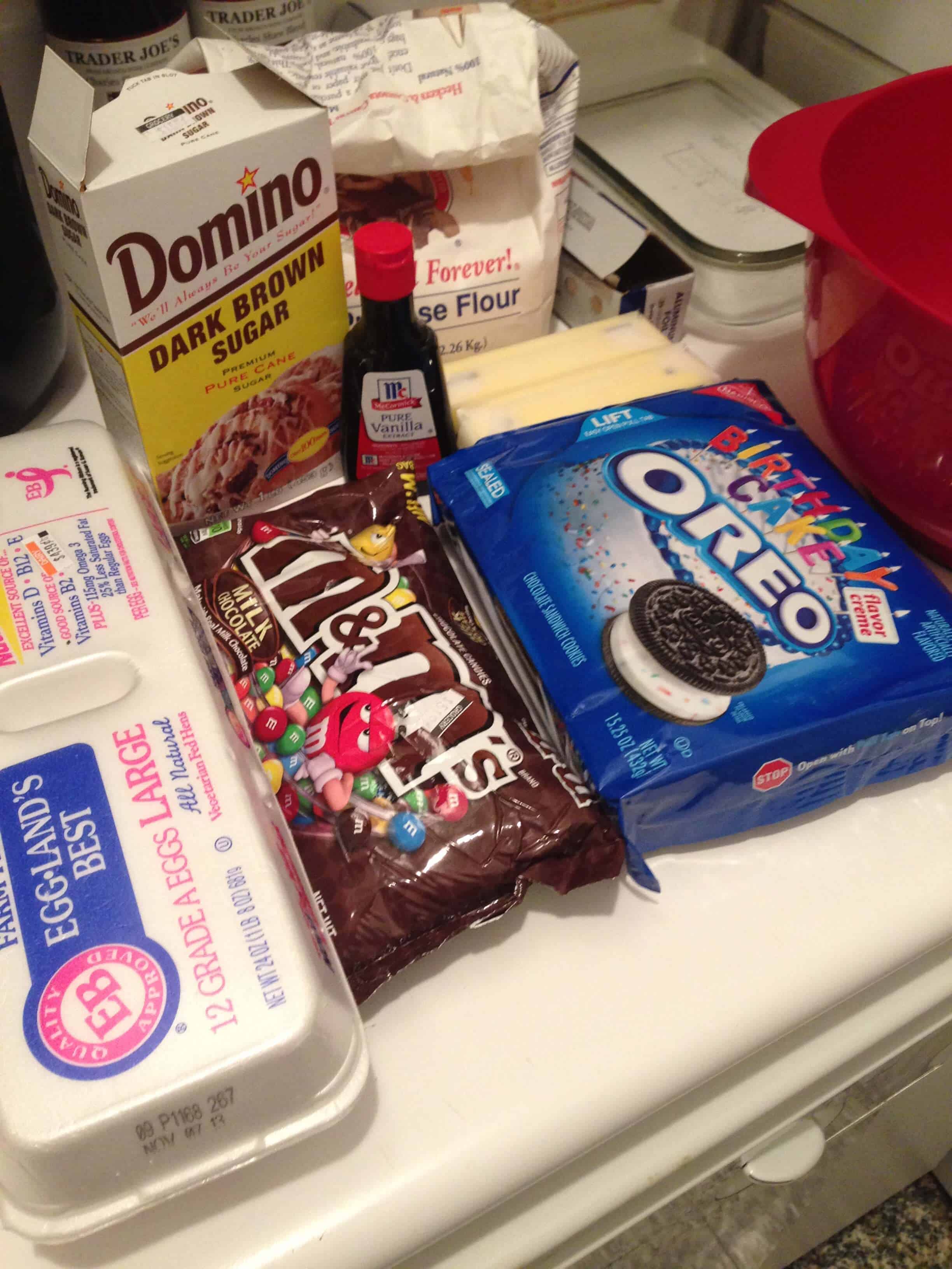 明天是我第一天回到我的主要客户工作,我想为我的团队做点什么。我偶然发现这个配方我知道这将是我明天请客的灵感来源。奥利奥,M&Ms,曲奇面团…组合成一个,烤得很棒。我用生日蛋糕奥利奥,因为他们无疑是最好的奥利奥类型。成分包括: