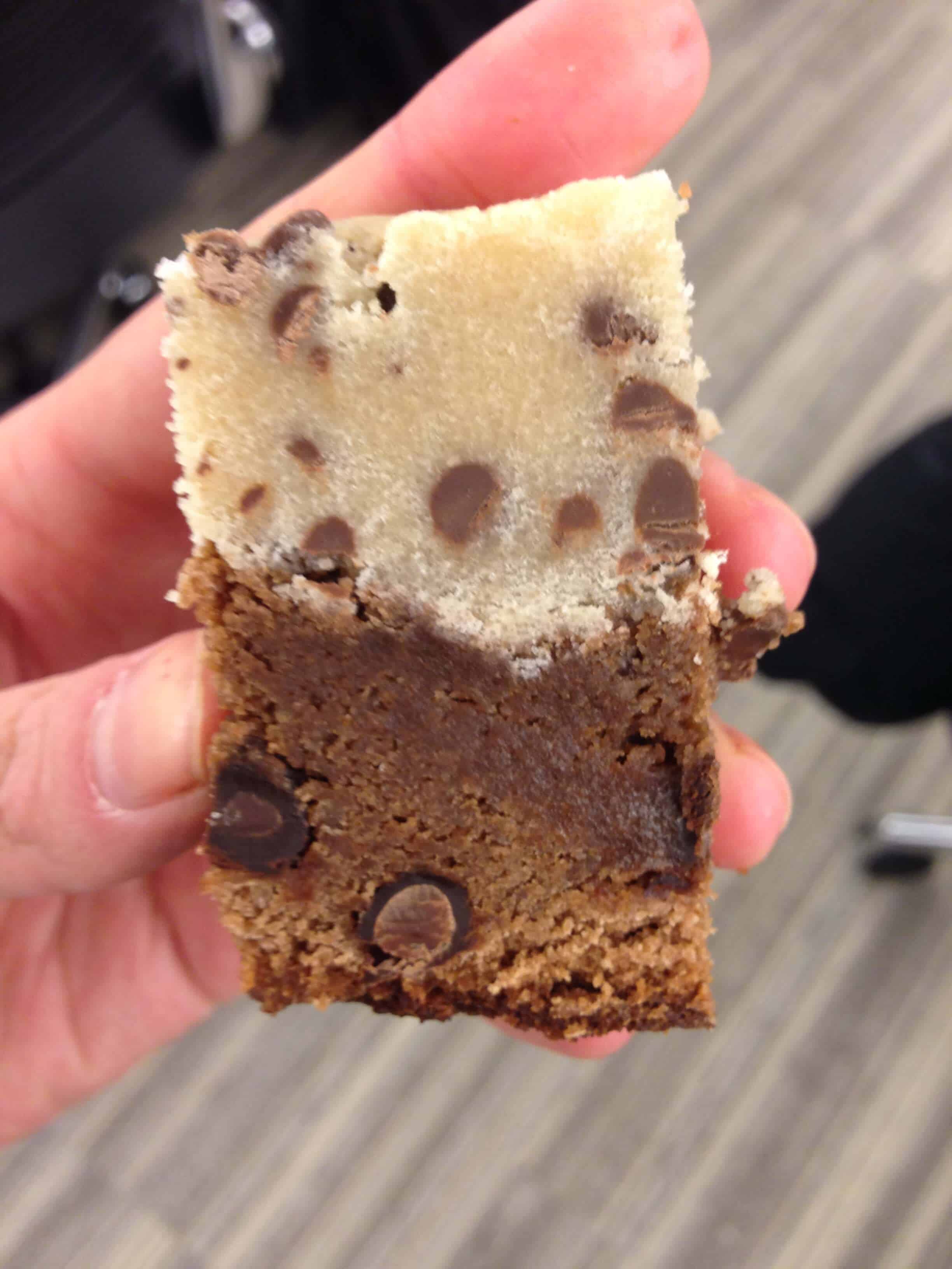 回顾:我做了一个双批(我把上面的食谱翻倍),所以我的层有点厚。这让我很烦恼,因为这让它们吃起来有点困难。幸运的是它们仍然很好吃!核仁蛋糕层很轻,像蛋糕一样,这很好地平衡了致密的曲奇面团层。我认为这种款待让各地的布朗尼都感到骄傲。