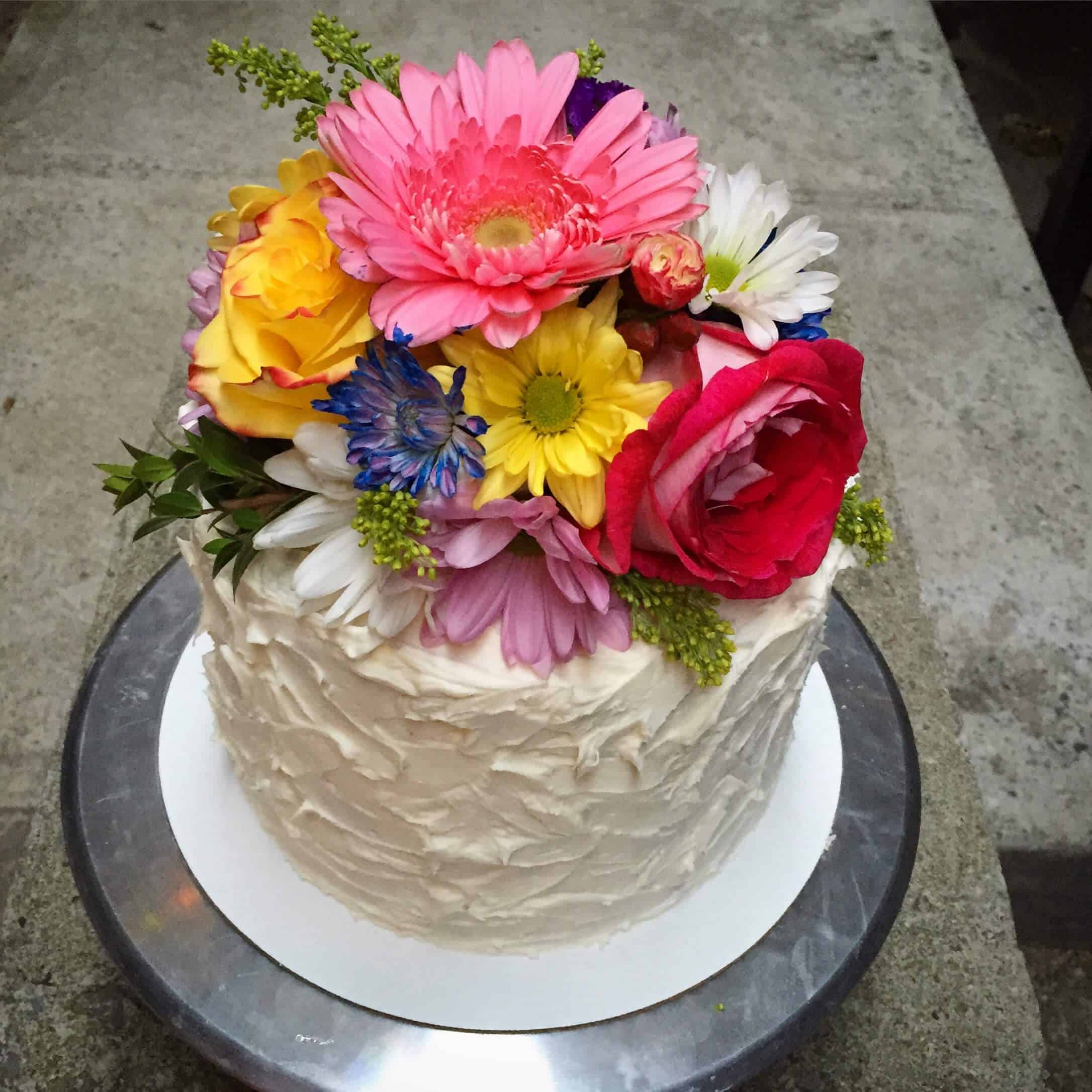 装饰用鲜花蛋糕的顶部,凝聚了美丽的花束,花卉绿色水龙头,锋利的剪刀,和细线。切连花带茎的顶部,留下约附着在花茎的一英寸。包装与绿色花卉带剩余干。长切一块约5英寸的金属丝,并通过卷绕杆的中间插入。排队花的电线中心,并把线下的末端,拧在一起,以确保花。在蛋糕上的所需位置的花姿,电线轻轻推入结霜,直到花是安全的。与每朵花重复,直到在蛋糕的顶部布置完成。请冰箱,直到蛋糕是可以投放。让蛋糕的网站出来切割前约1小时,以确保结霜已经软化足以通过蛋糕切。如果您对这个程序有任何问题,这是一个精彩视频关于蛋糕的制作和花卉装饰物。滚动到27分钟,当他们去花那