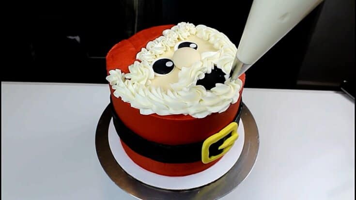 如果需要的话,你还可以添加一些白色磨砂糖到圣诞老人的帽子的基础。这个蛋糕是为了庆祝假期一个完美的方式!