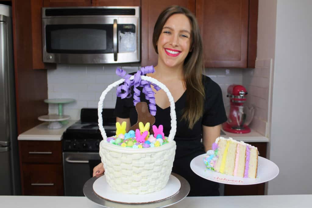 The Easter basket cake is simply the perfect Easter! It's made with coconut cake layers, and is topped with all your favorite treats, just like a real Easter basket