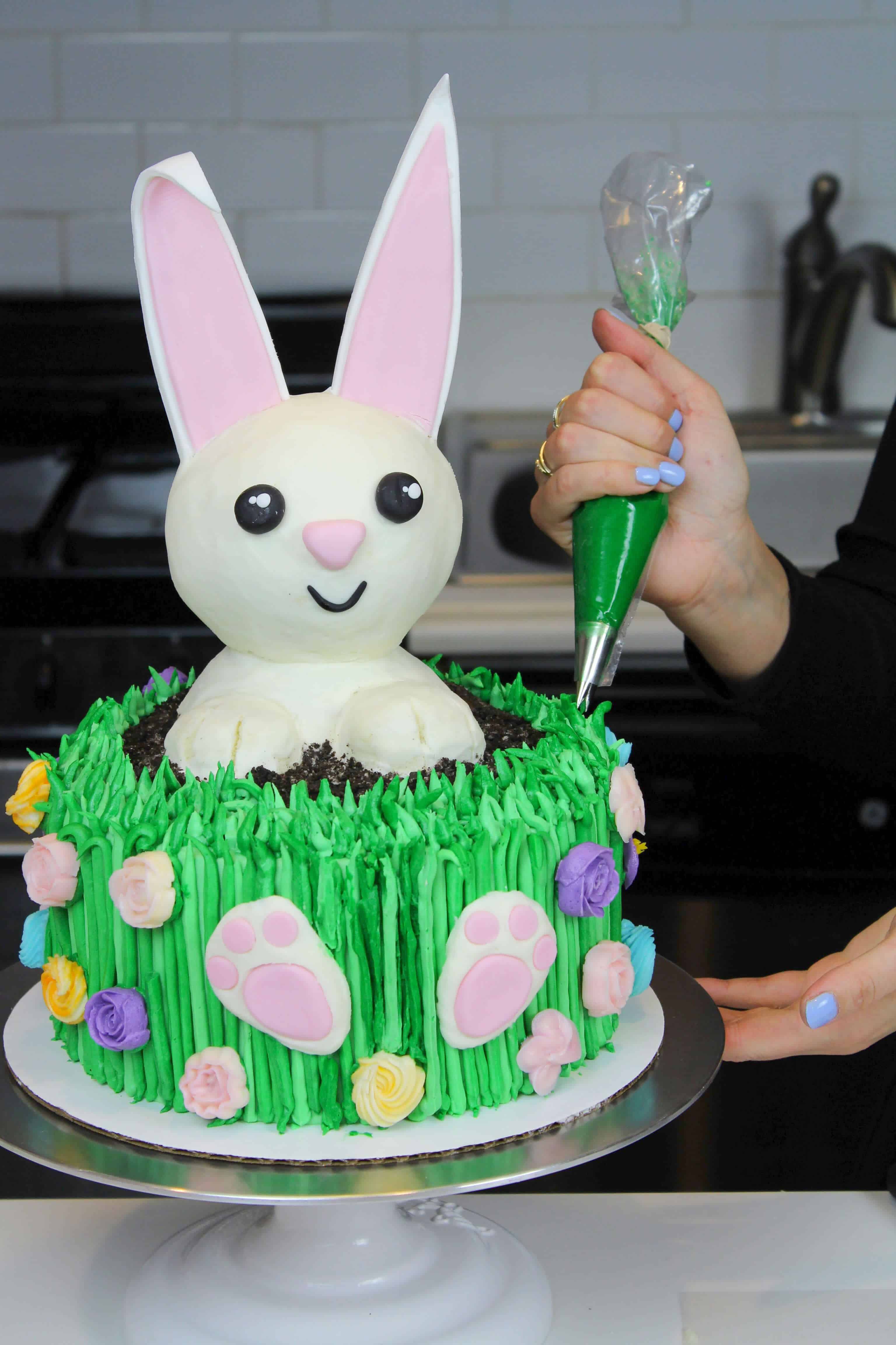 令人惊讶的是,我用三到四英寸的蛋糕层做了这个复活节兔子。我第一次做这个蛋糕的时候,我试着把它们一层层地雕刻起来,这简直是一场噩梦。它们太小了,修不了!