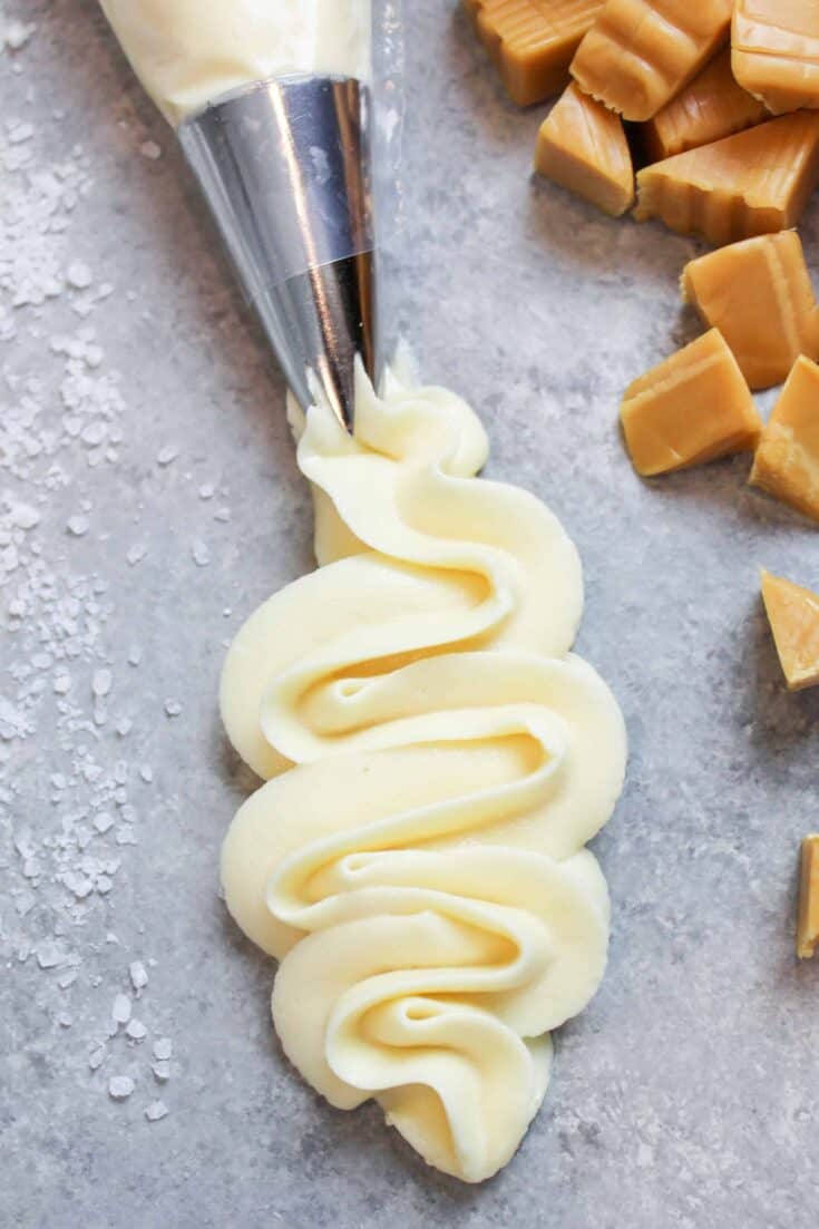 像几乎所有我的结霜的食谱,这个咸焦糖结霜有一个美国奶油基地。