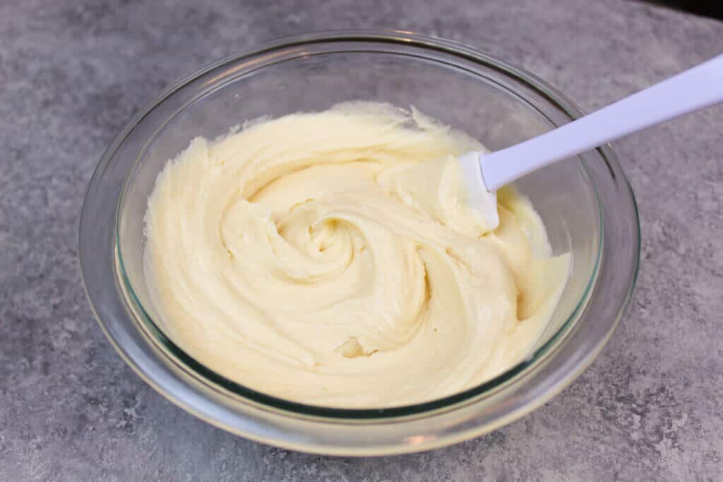 - 慢慢拌入黄油(每次1汤匙),然后拌入奶油和盐。混合物会很薄,但冷却后会变厚。