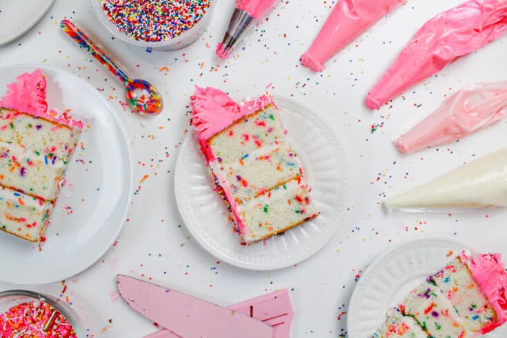 没有任何褐色洒在没有任何褐色的情况下,Funfetti蛋糕层看起来好多了!