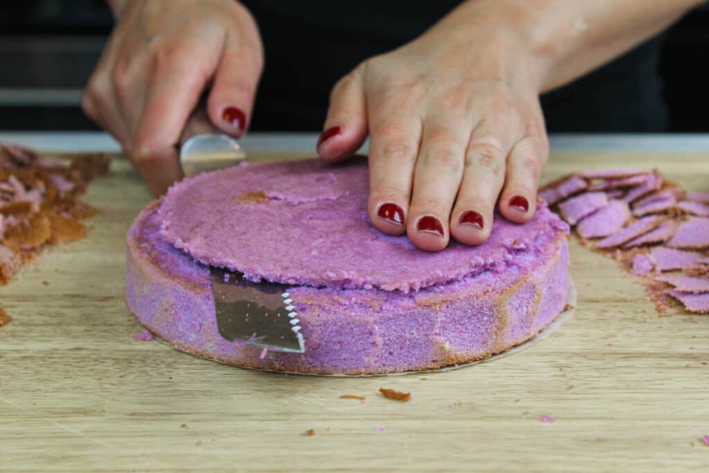 - 一旦充分冷却,用锯齿刀,以水平的层的顶部和侧以除去任何焦糖化。