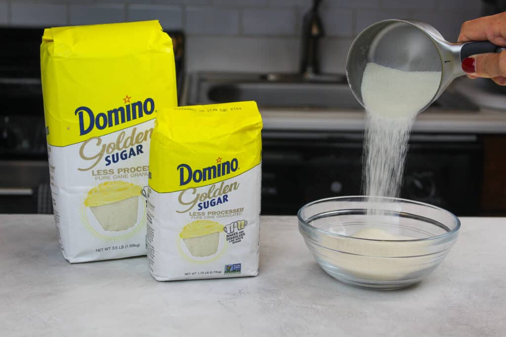 达美乐(Domino)黄金糖由纯蔗糖制成,就像白糖一样,一杯接一杯地使用。主要的区别是它有美丽的金黄色和明显的糖蜜味道。