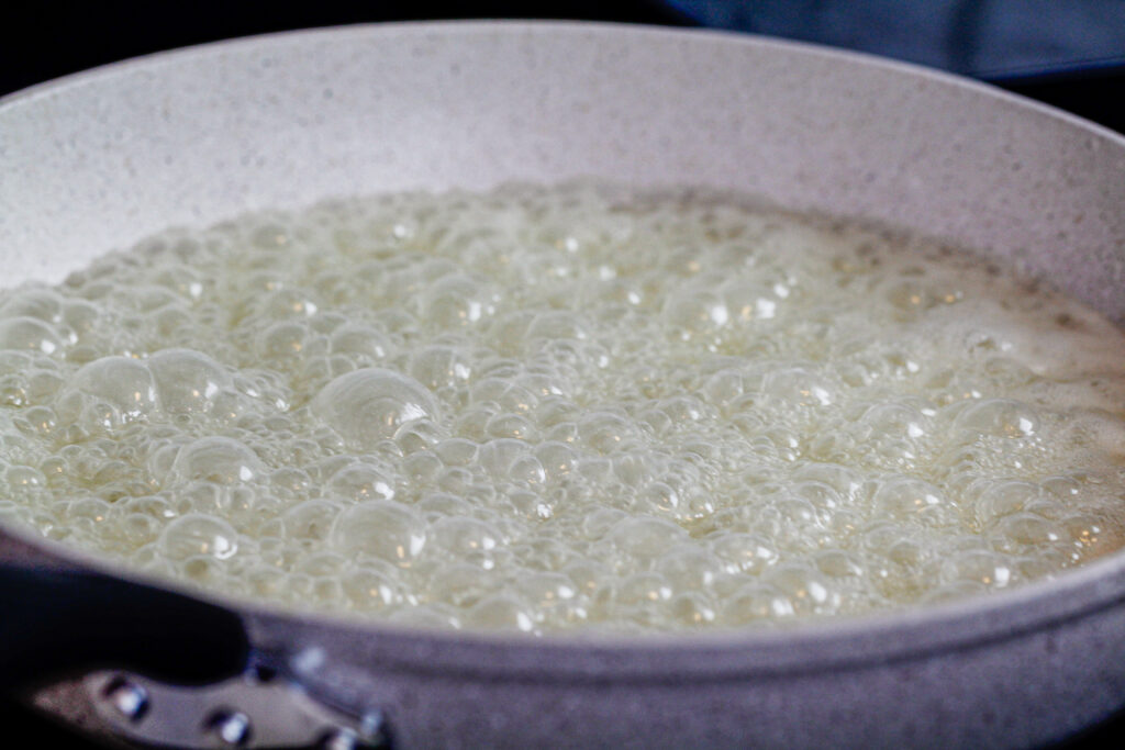- 一旦混合物的整个顶沸腾并覆盖有气泡,让它继续煮沸45秒,不进行搅拌。这一步是至关重要的,因为它有助于糖煮下来,并且将允许Cookie的设置牢固。