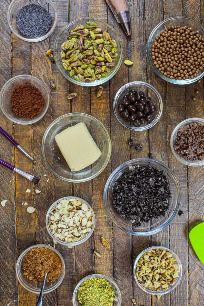 为了实现这个想法,我使用了一些不同的配料。压碎的奥利奥、罂粟籽和巧克力糖霜上的一些杏仁片,使它看起来像湿润的、营养丰富的土壤。