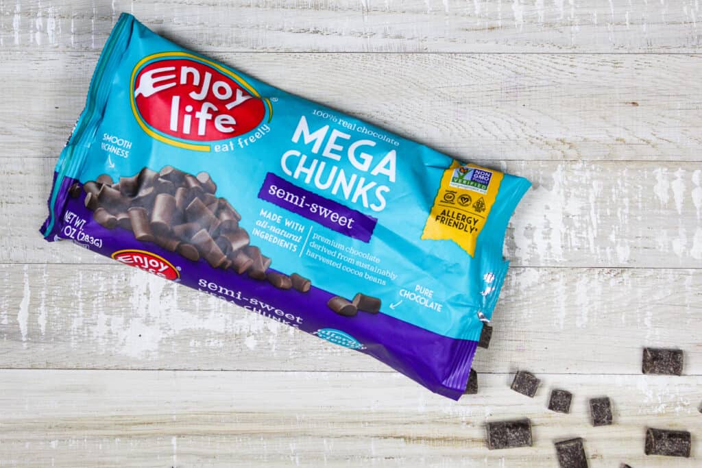 - 巧克力脆片- 用素食巧克力片或巧克力块,不含乳制品!你可以在大多数杂货店的烘焙区找到它们。我通常使用享受生活品牌。