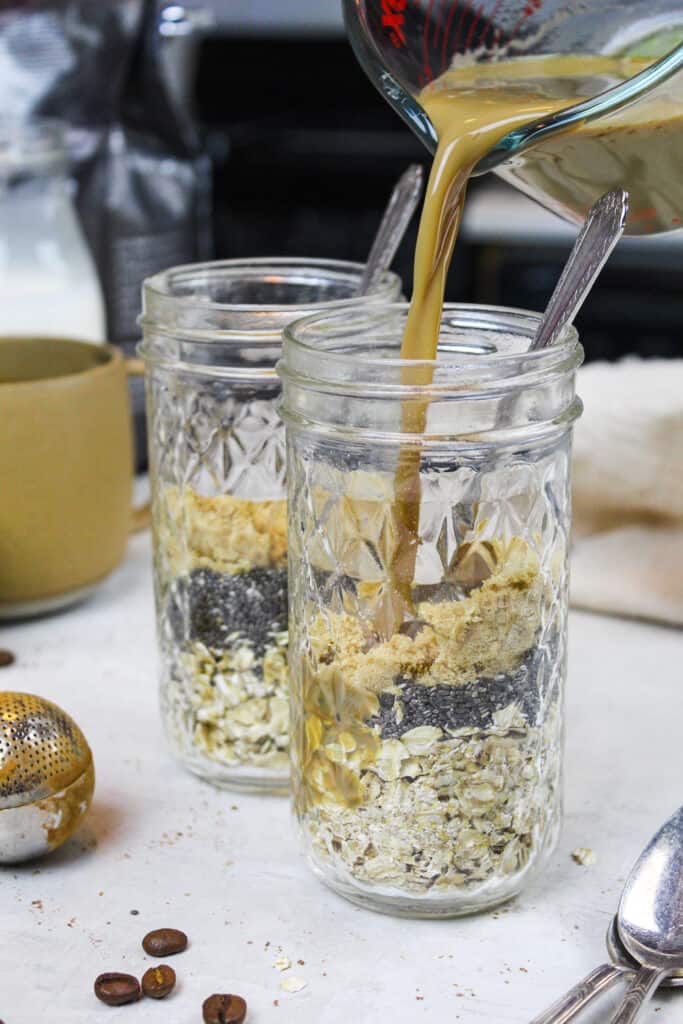 将咖啡或浓缩咖啡加入到这些隔夜燕麦咖啡中