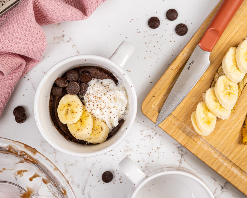 显然,它必须是微波炉安全的(没有金属!),但也必须足够大。虽然最初,面糊可能不会将杯子填满很高,但蛋糕在微波炉中烹饪时会升起。