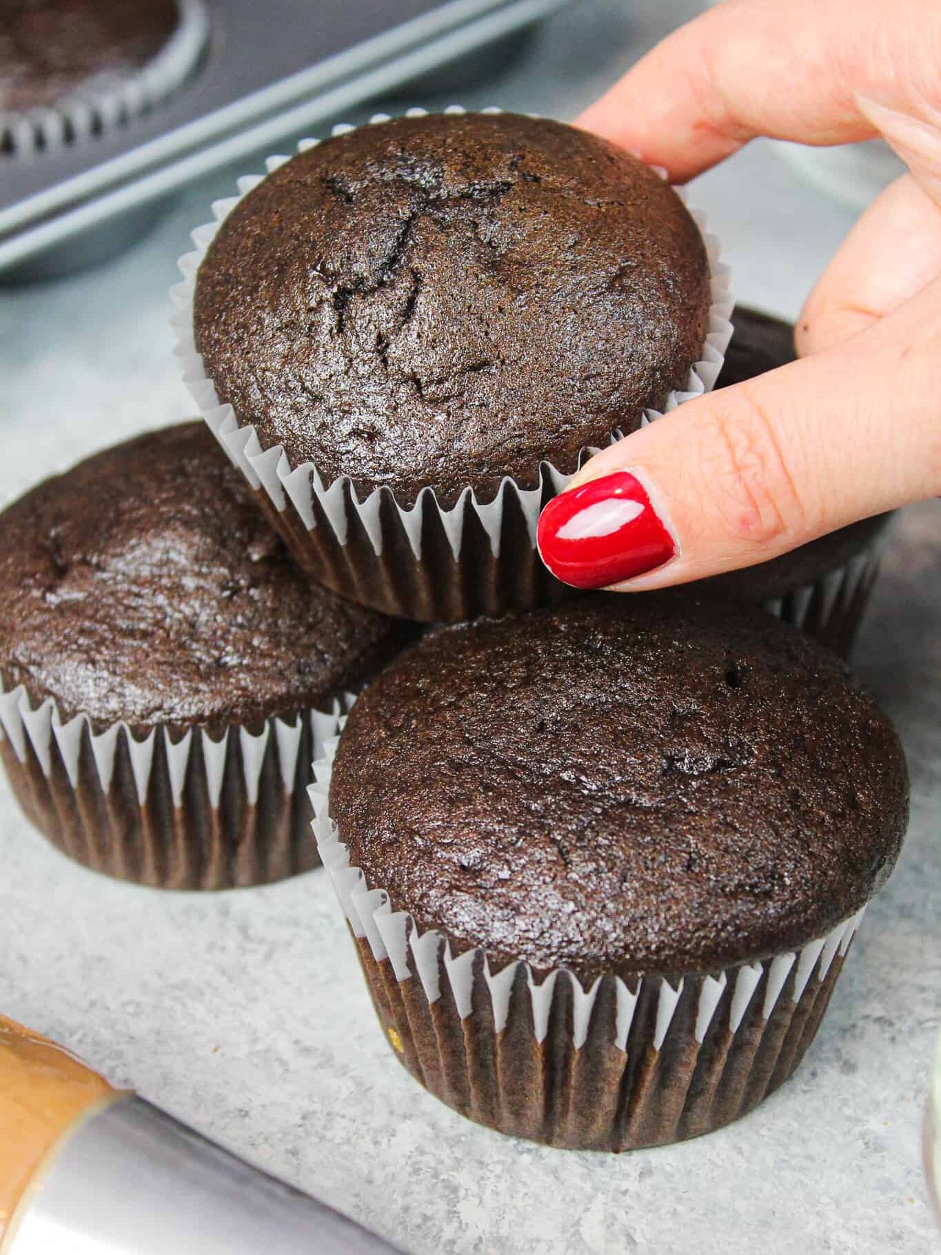 它的味道略有不同,但仍然会使这些纸杯蛋糕具有美味的巧克力味和深色。