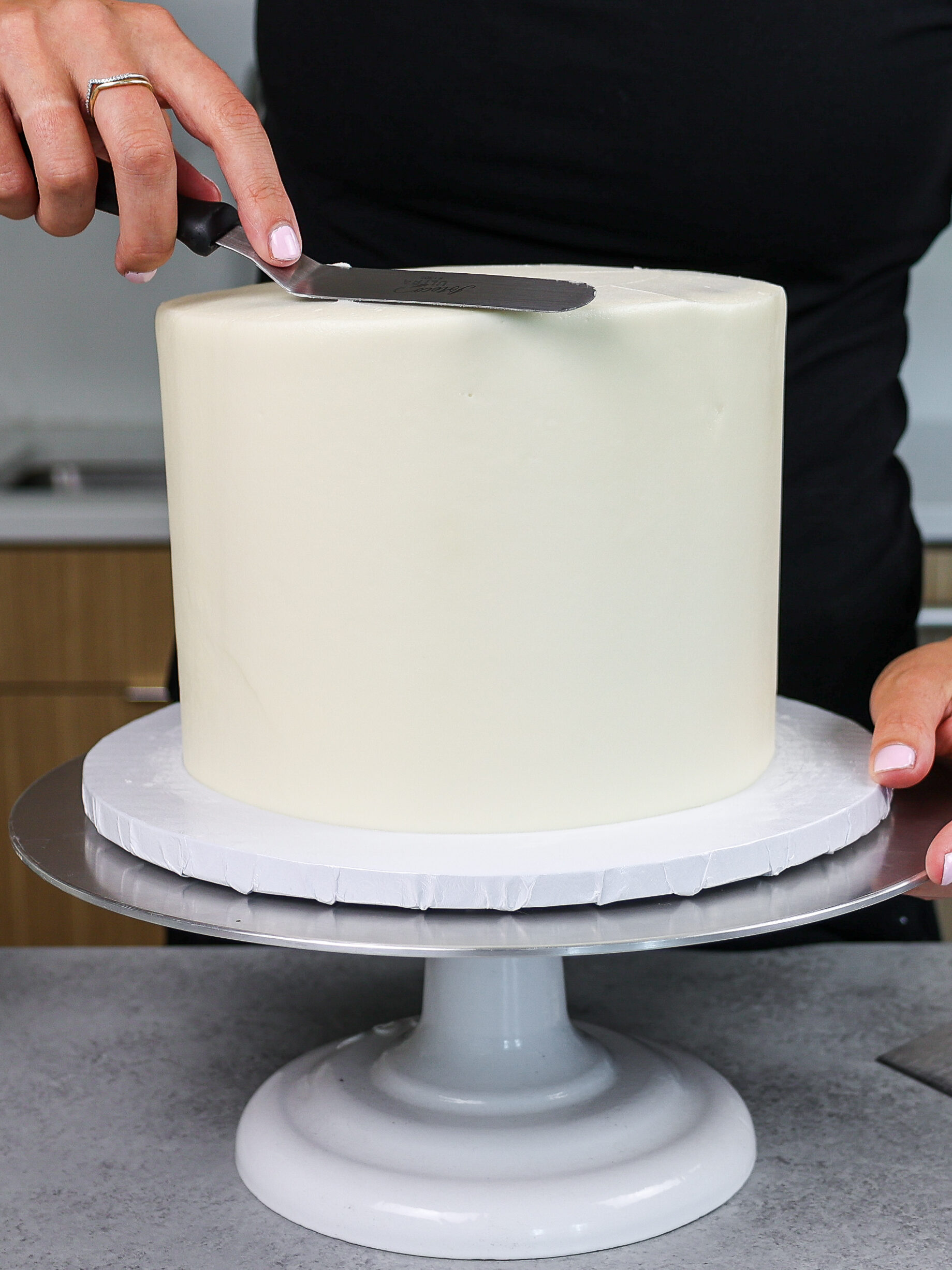 - 使用一个板凳刮刀帮助你得到你的最后一层糖霜超级光滑。