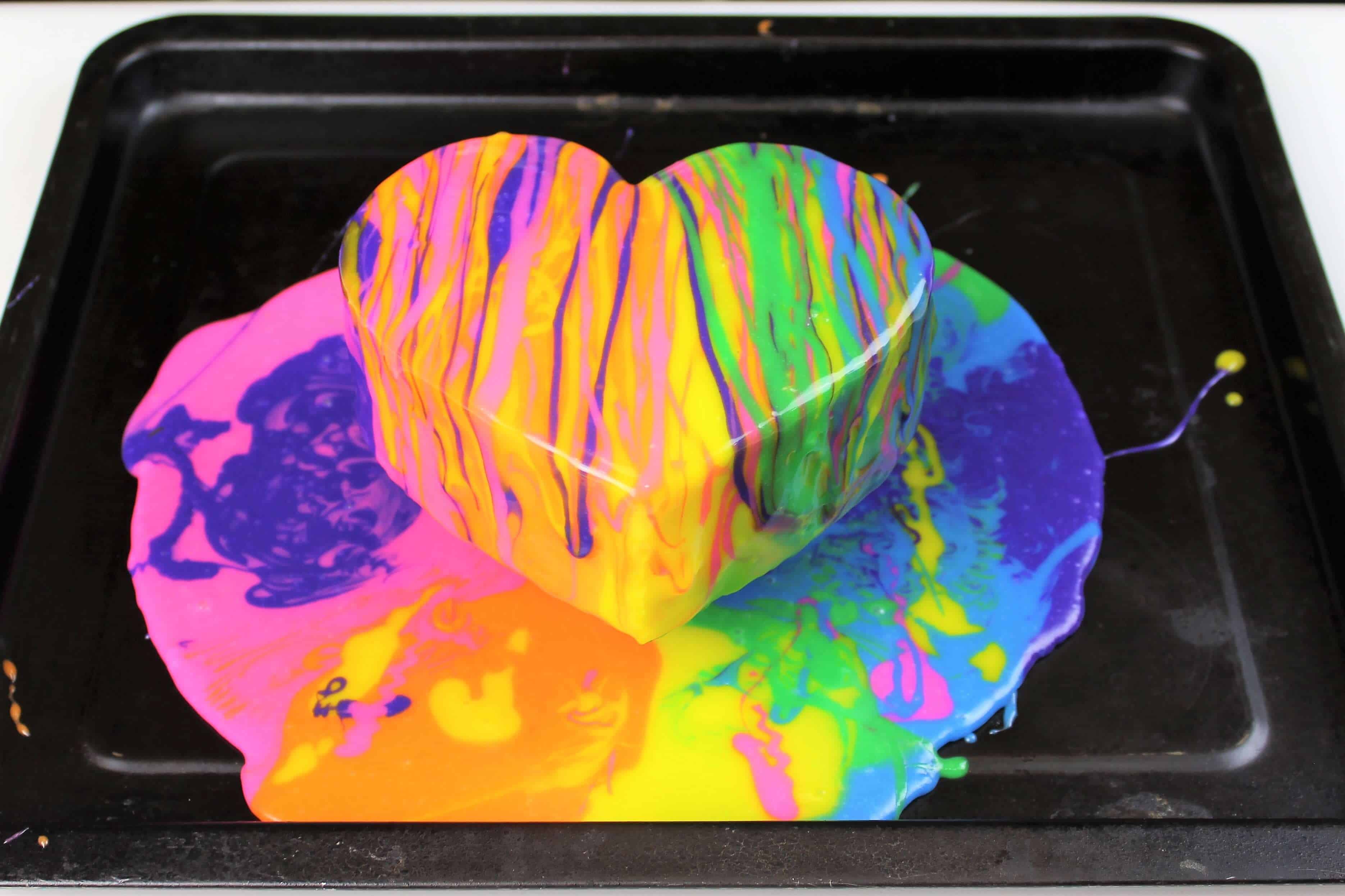 我做过几种不同的镜面釉糕,但这个绝对是最色彩斑斓的!它的灵感来自丽莎·弗兰克的彩色设计…