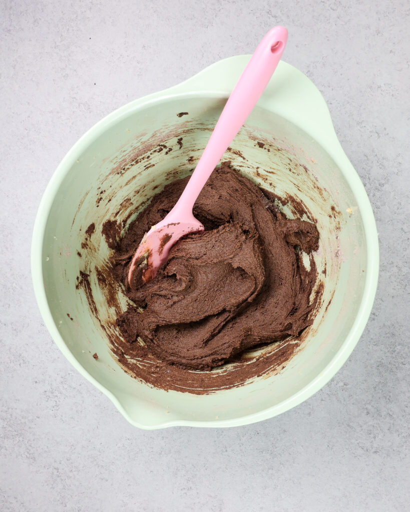 - Whisk together the flour, cocoa powder, baking soda, and salt in a medium-sized bowl. Set aside.