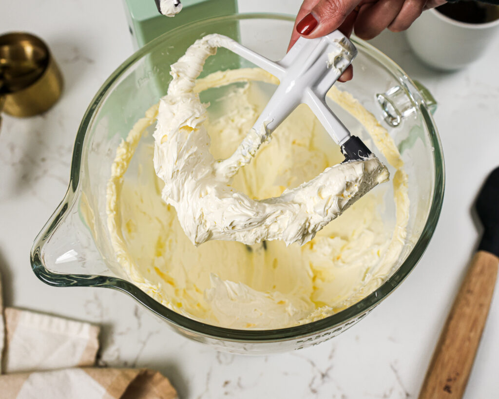 - 如果结霜太厚,添加额外的汤匙奶油。如果太薄,添加另一个1/4杯糖粉。知道你结霜是正确的一致性,看看我的帖子奶油乳酪的一致性。