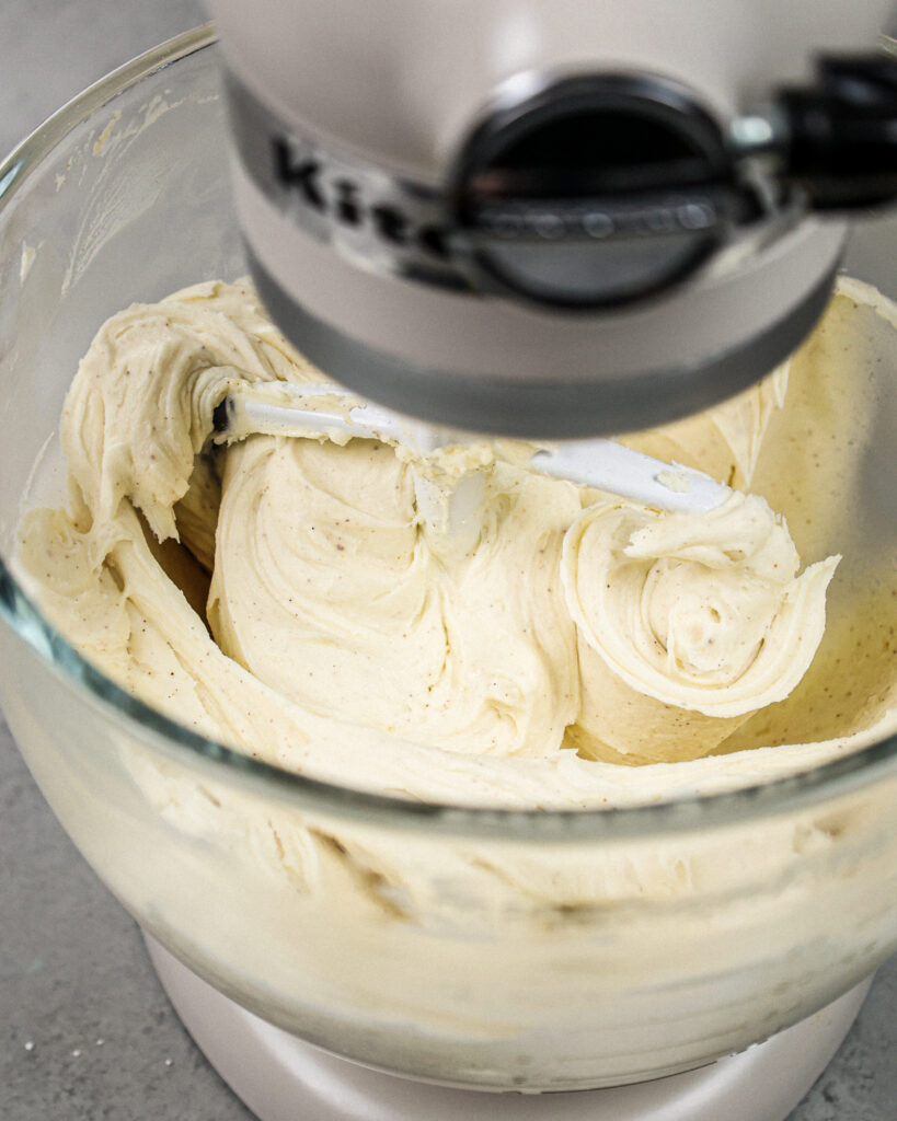 - 2打1杯或室温黄油棒在中速30秒用桨附件或搅拌机,直到顺利。