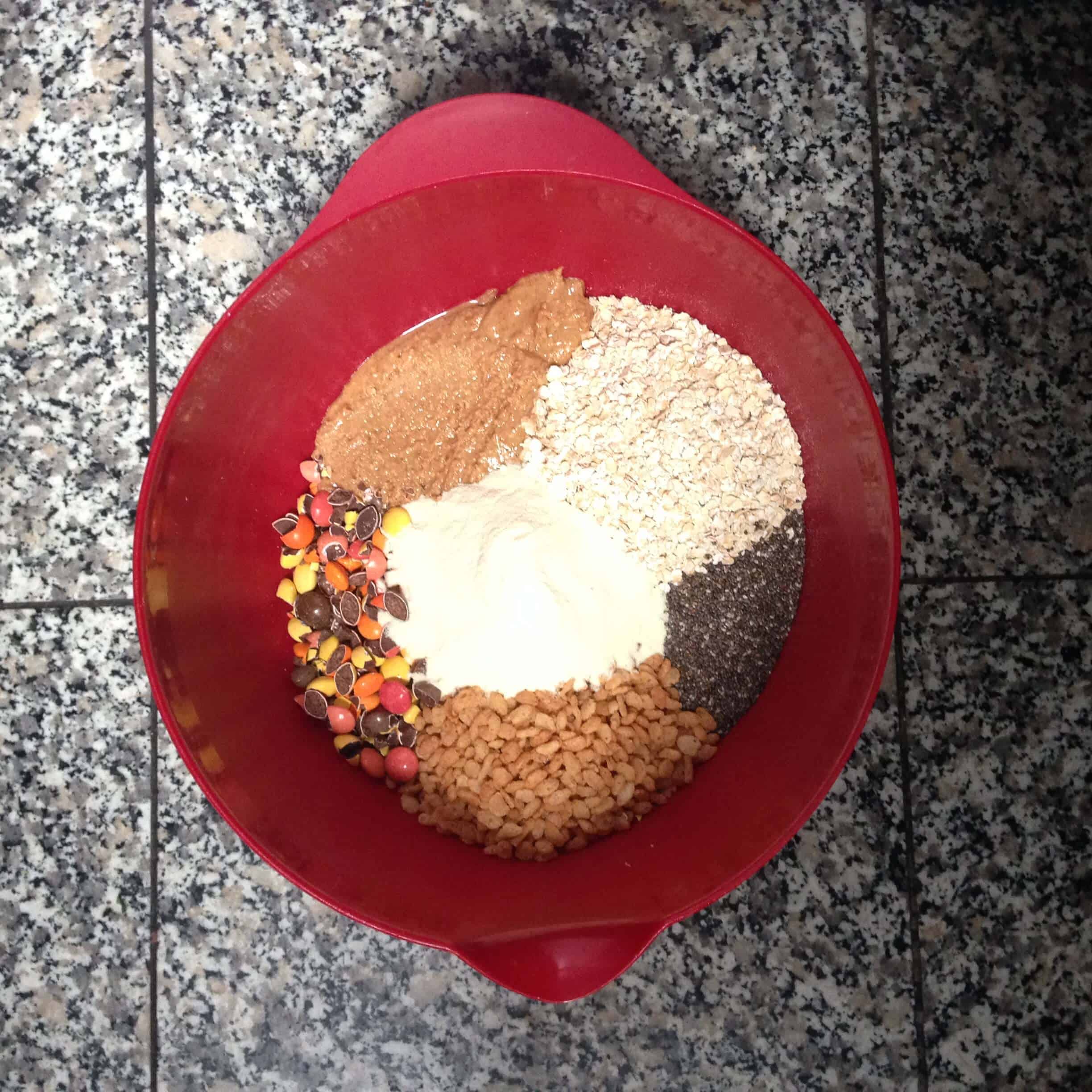 - 1杯迷你巧克力芯片(或切碎的M&MS)