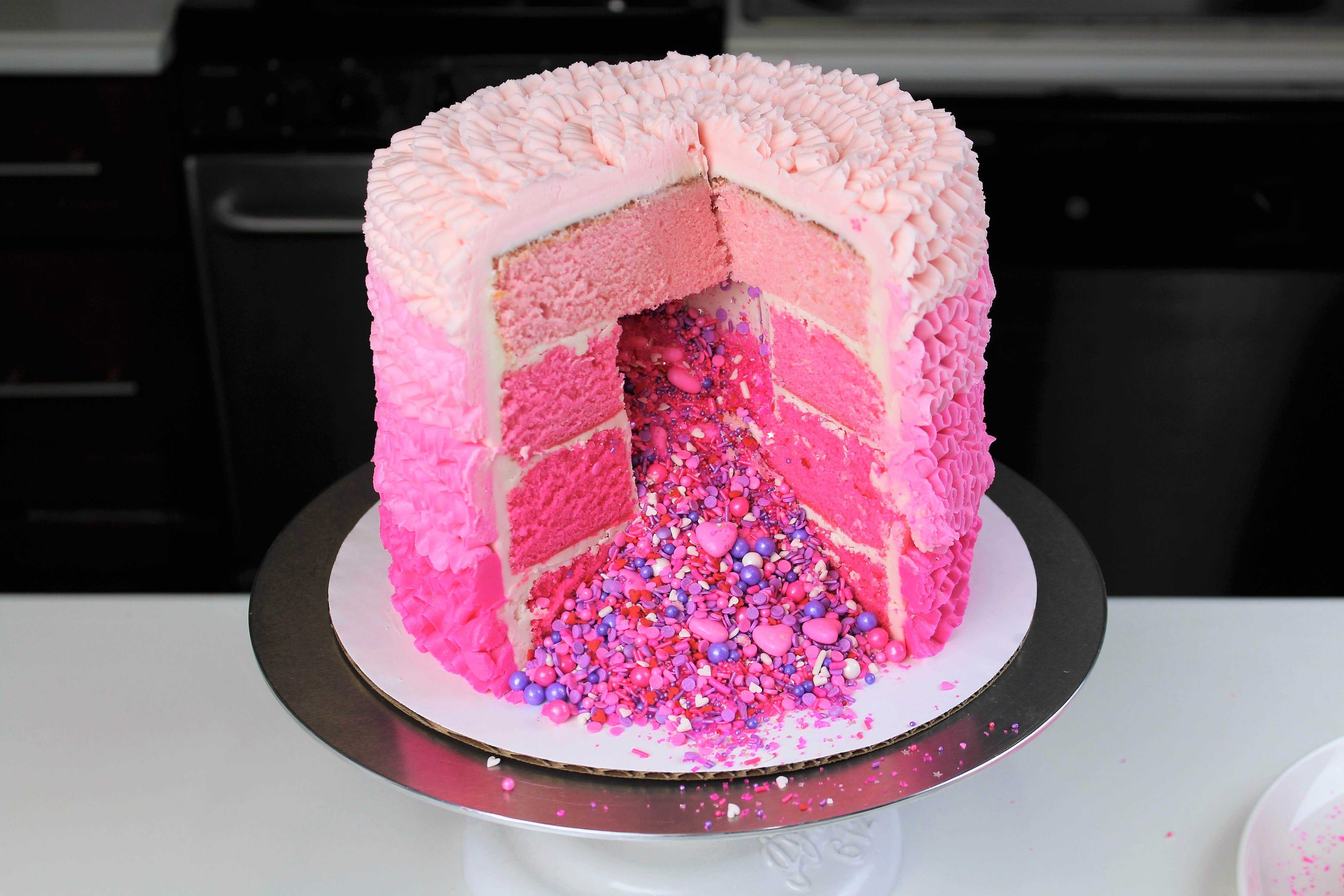 Ombre的粉色荷叶边蛋糕五彩纸屑