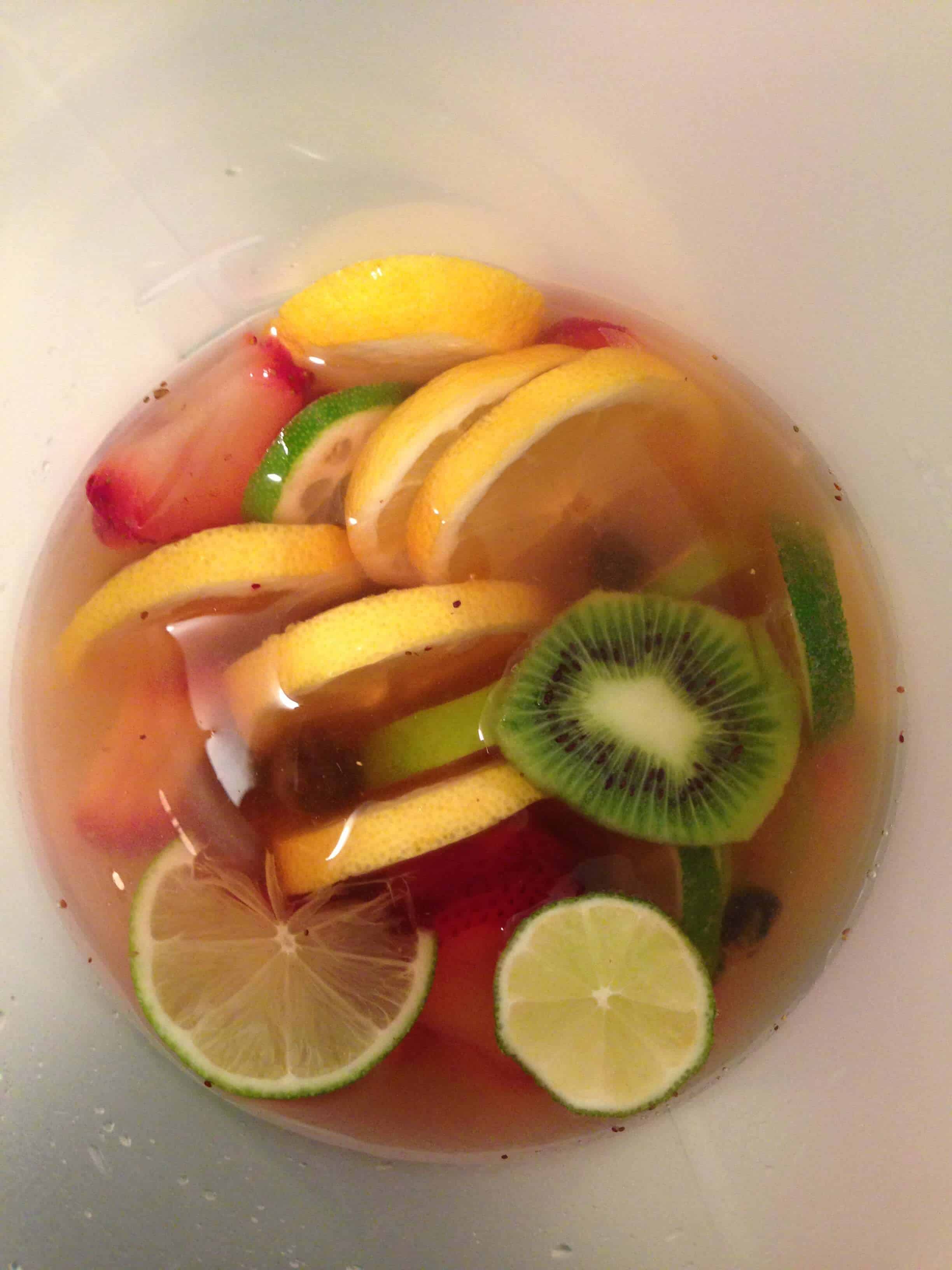 我最近做了红酒桑格利亚汽酒,并以为是时候我尝试了白葡萄酒桑格利亚汽酒了!您确实可以添加想要的水果到Sangria,因此我选择了我最喜欢的水果并使用以下成分: